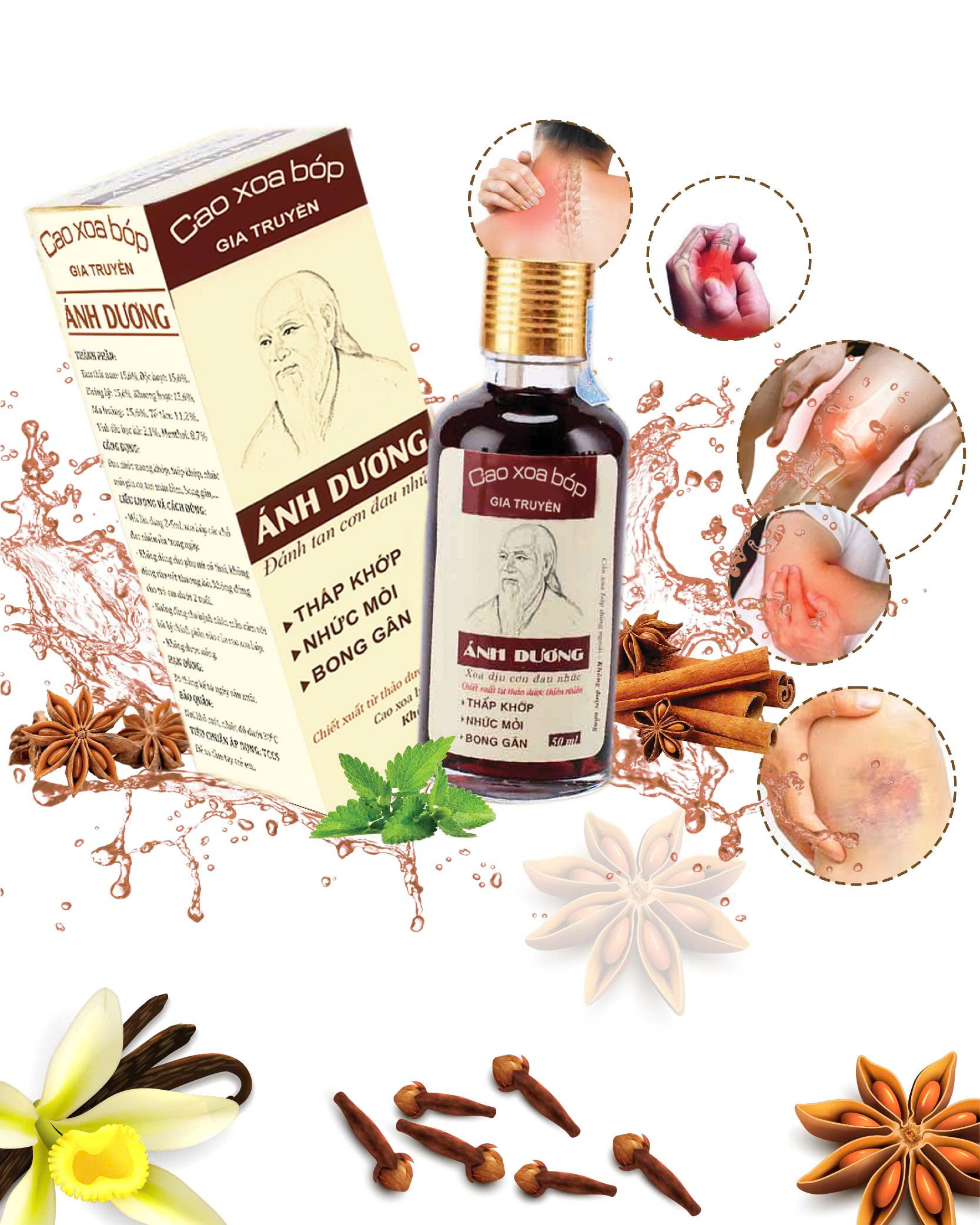 Các thảo dược có trong sản phẩm như : Quế khâu, Sinh khương, Đại Hồi, Hậu Phác, Tinh Bạc Hà,...